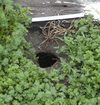 In the garden or banks, with a smooth, shiny entry, about 50-60mm round can indicating an active burrow.